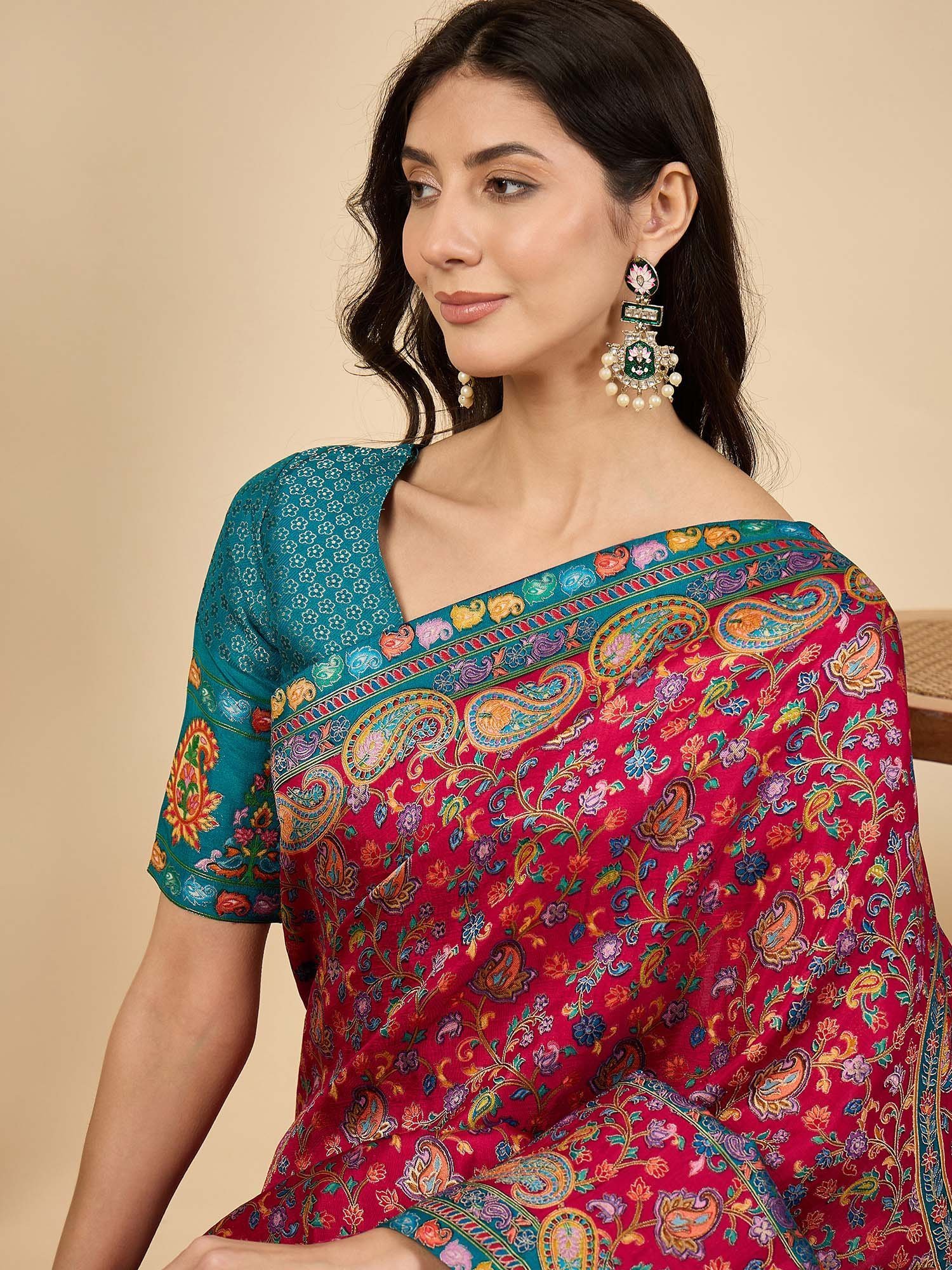 Pink Woven Viscose Saree with Unstitched Blouse